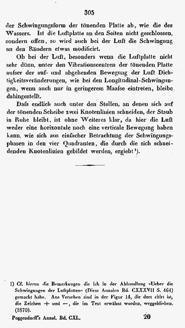 | 1825 | Chladni | Bemerkungen über die Klangfiguren der Scheiben | Annalen der Physik 81 | 345 346 347 348 349 350 |