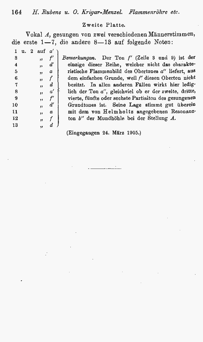 | 1905 | Rubens & Krigar-Menzel | Flammenröhre für akustische Beobachtungen | Annalen der Physik und Chemie 322 (4-17) | 149 150 151 152 153 154 155 156 157 158 159 160 161 162 163 164 |