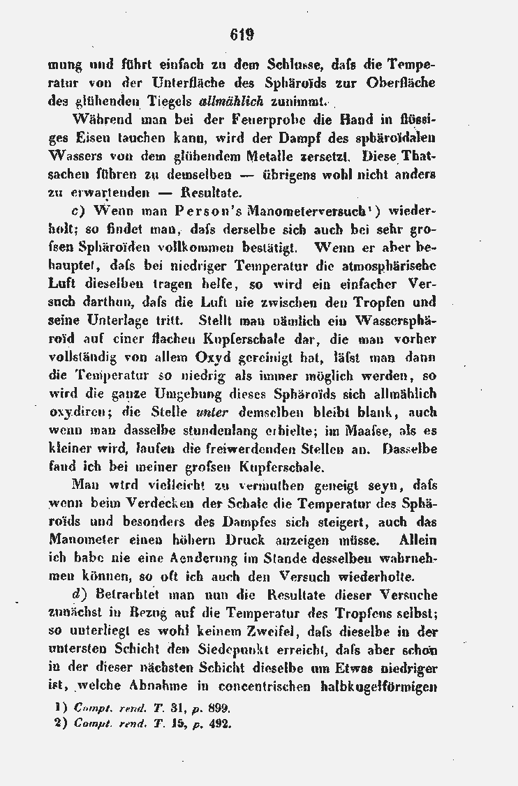 | 1850 | Schnauß | Neue Versuche mit dem Leidenfrost'schen Phänomen | Annalen der Physik und Chemie 155 (2-79) | 432 433 434 435 436 437 |