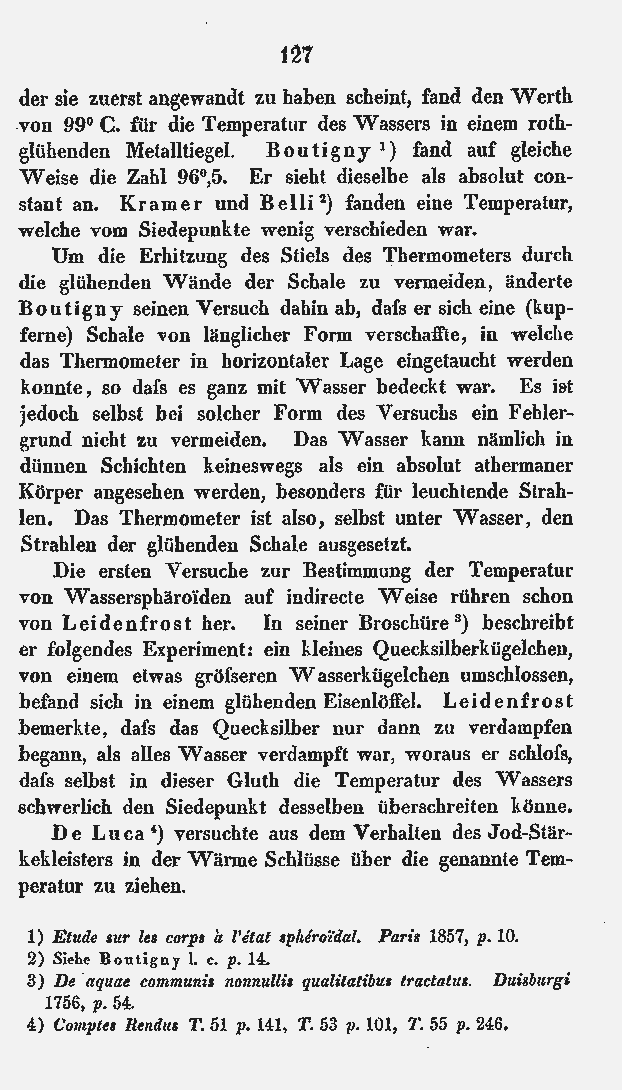 | 1840 | Boutigny & Robiquet | Phänomene der Calefaction | Annalen der Physik und Chemie 127 (2-51) | 130 131 132 133 134 135 136 137 138 |