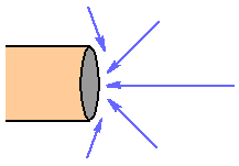 | Die Erwärmung des Wassers sorgt für dessen geringer werdende spezifische Wichte und damit ein Aufsteigen des leichteren warmen Wassers. Dies bewirkt das Ausstoßen von Wasser am einen und das Einsaugen von Wasser am anderen Rohrende. | ![]() |